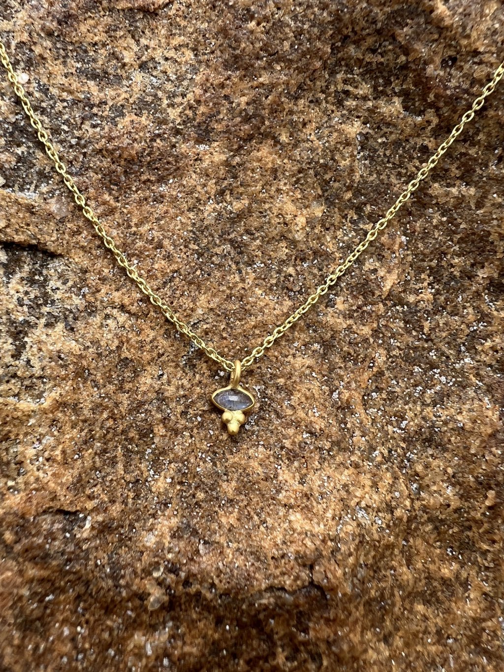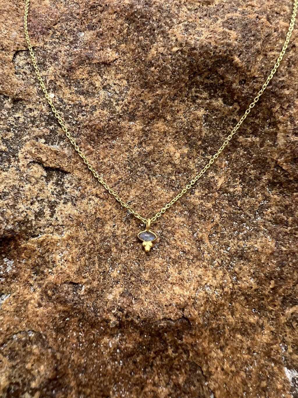 Minimalistický náhrdelník s drobným labradoritem, který v sobě nese energii proměny a vnitřní síly. Jemný, ale hluboký – ideální pro období změn, kdy potřebuješ důvěřovat sama sobě.