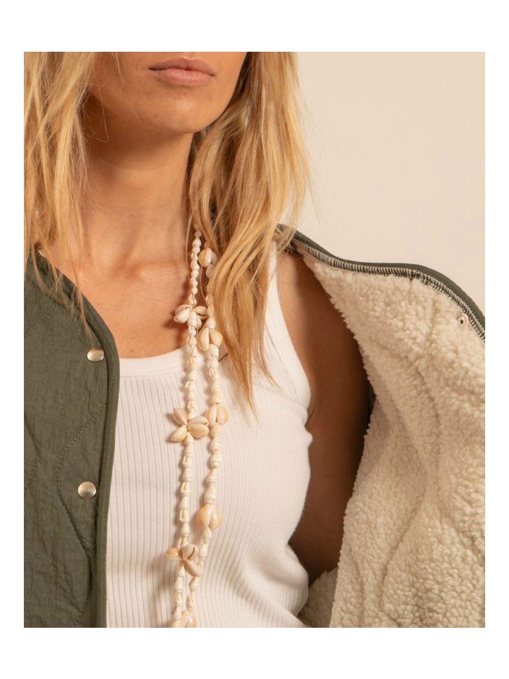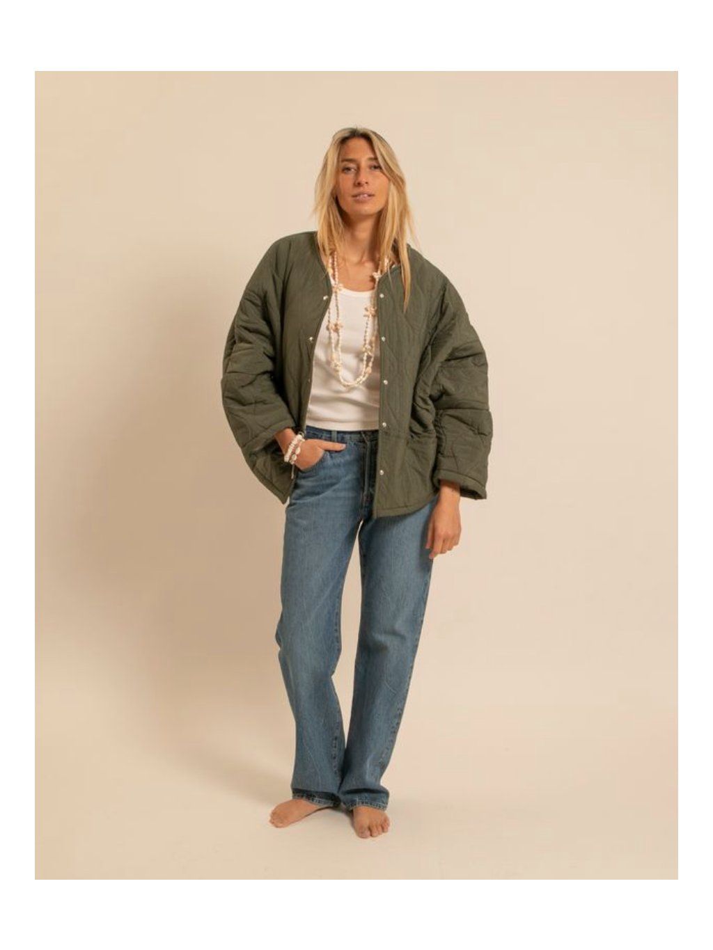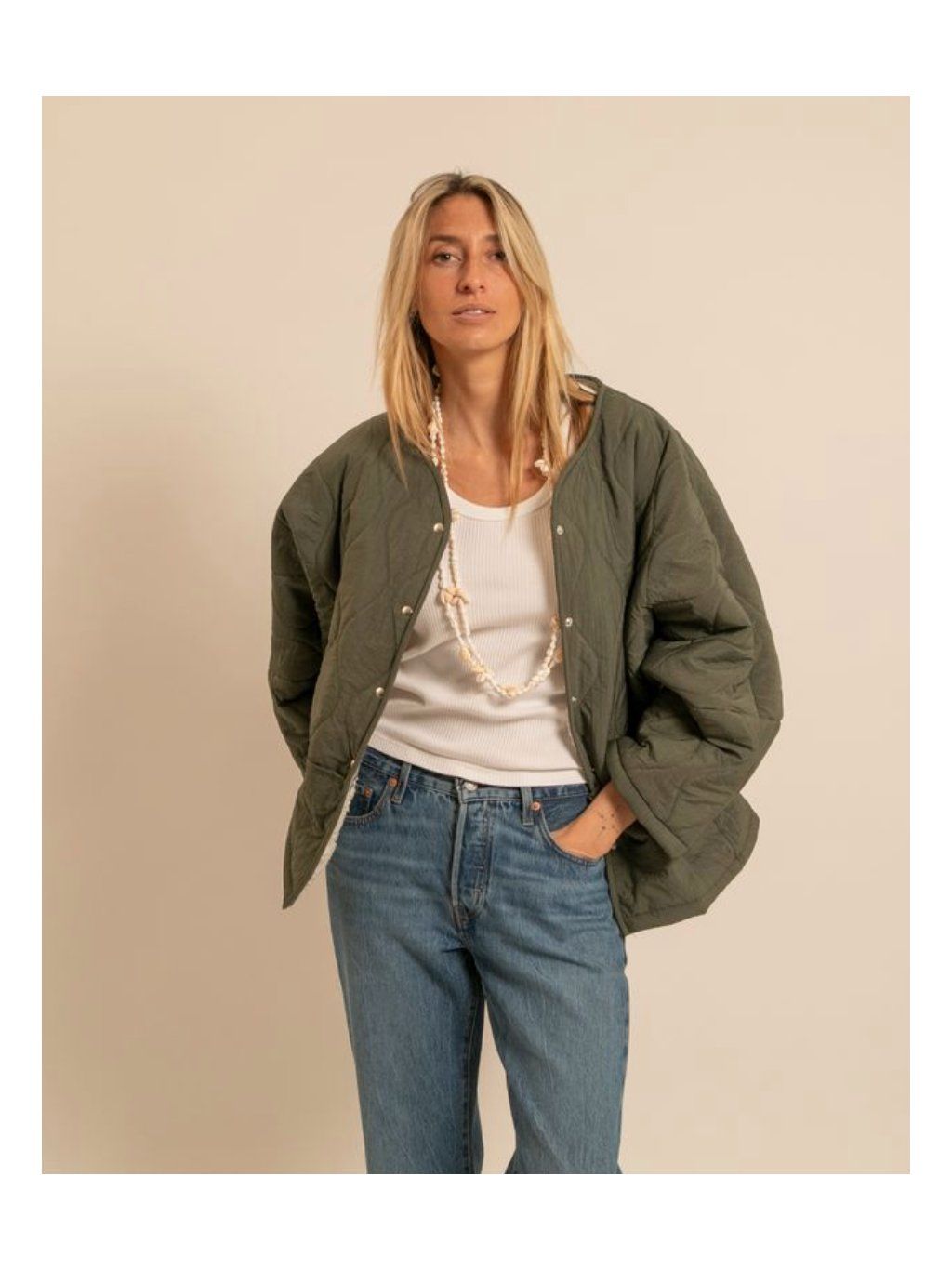 Stylová prošívaná bunda s hebkým vnitřním kožíškem, která spojuje pohodlí, hřejivost a minimalistický design. Lehká, ale přitom příjemně teplá – ideální pro přechodné období a chladnější podzimní dny.