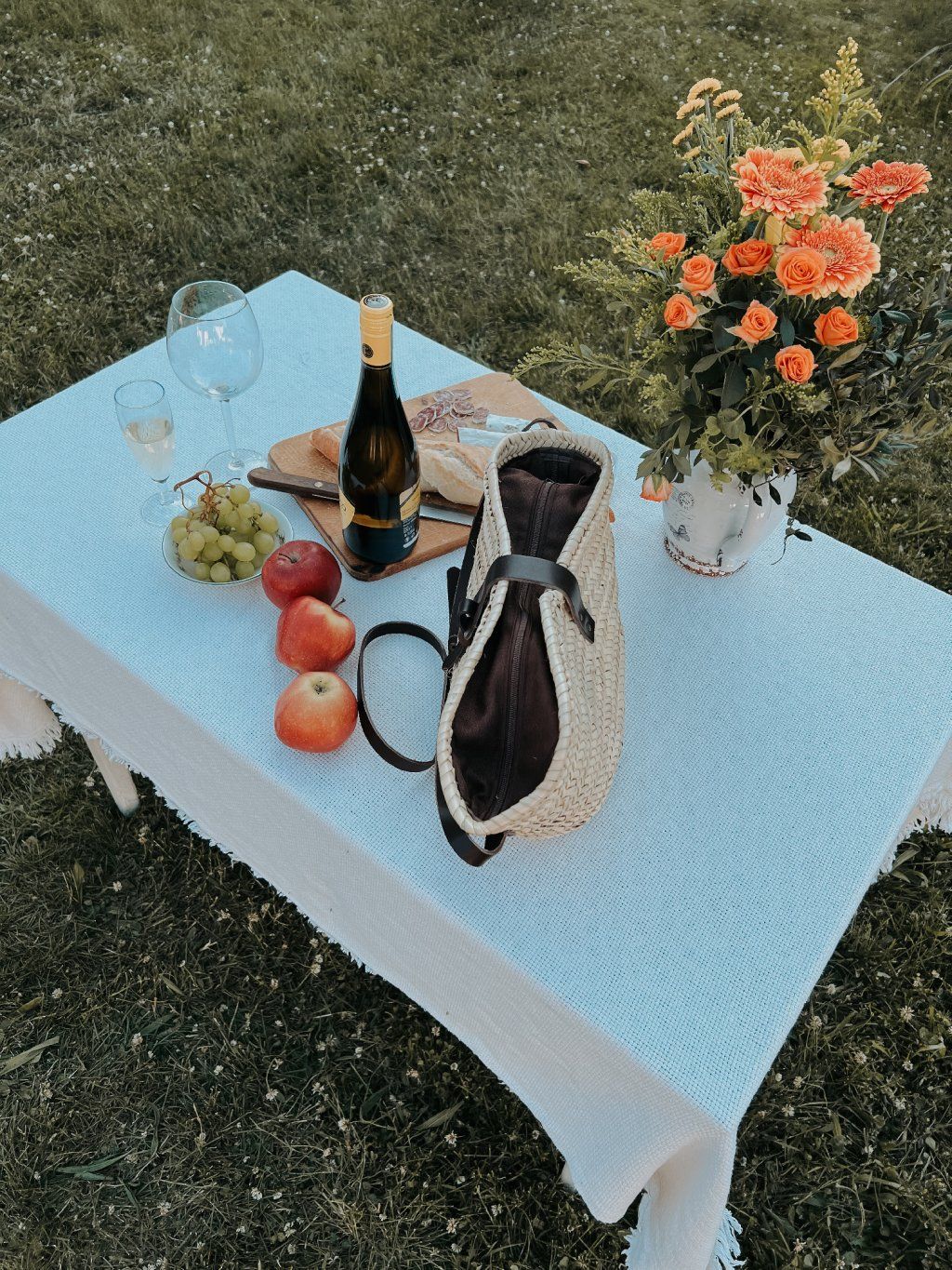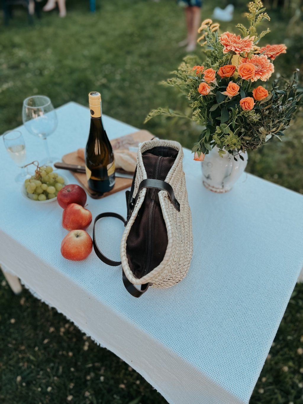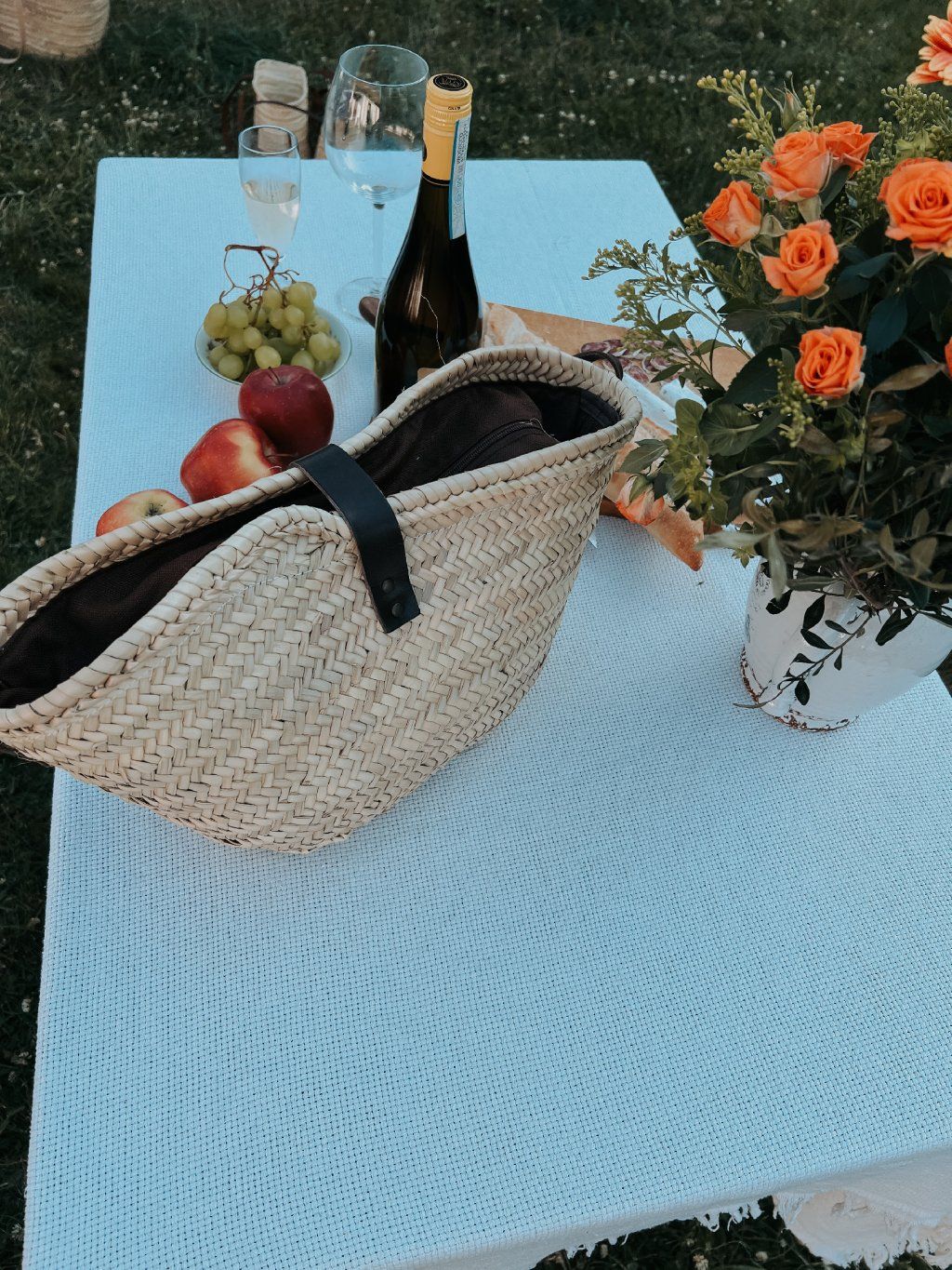 Středně velká proutěná taška z Mallorky – s koženým zapínáním a podšívkou