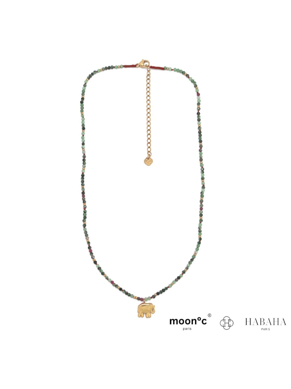 Dominantou náhrdelníku je zlatý přívěsek ve tvaru slona, symbol štěstí, moudrosti a ochrany. Díky jemnému designu je náhrdelník ideální pro každodenní nošení a krásně se kombinuje s dalšími šperky.