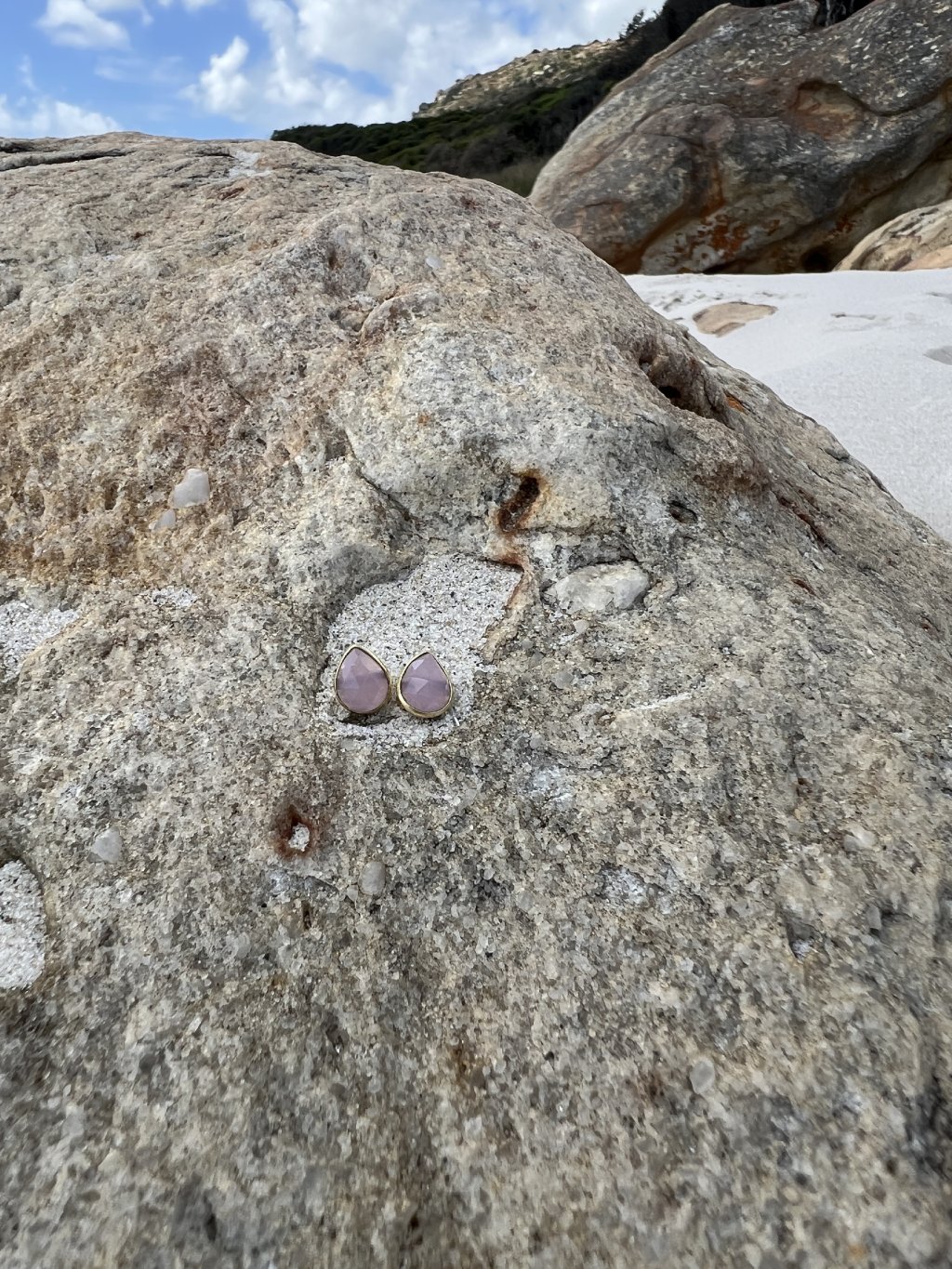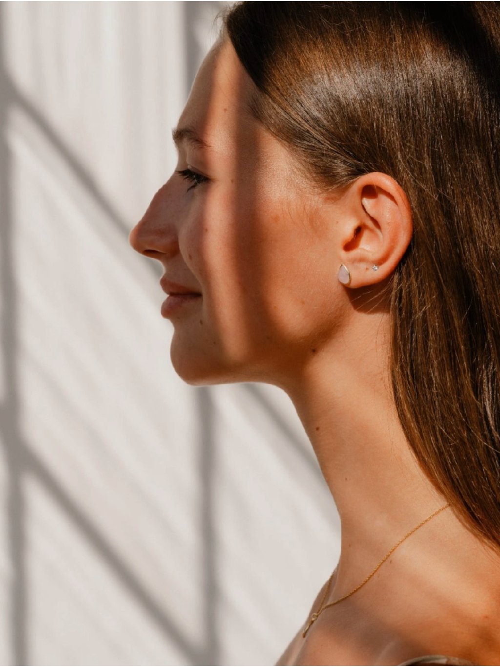 Jemné kapkové náušnice s přírodním růženínem zasazeným do zlatého tónu. Minimalistický tvar, který nechává vyniknout přirozenou krásu kamene a jeho jemnou růžovou tonalitu.