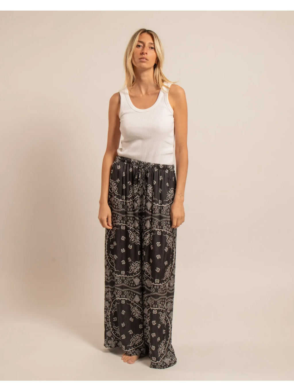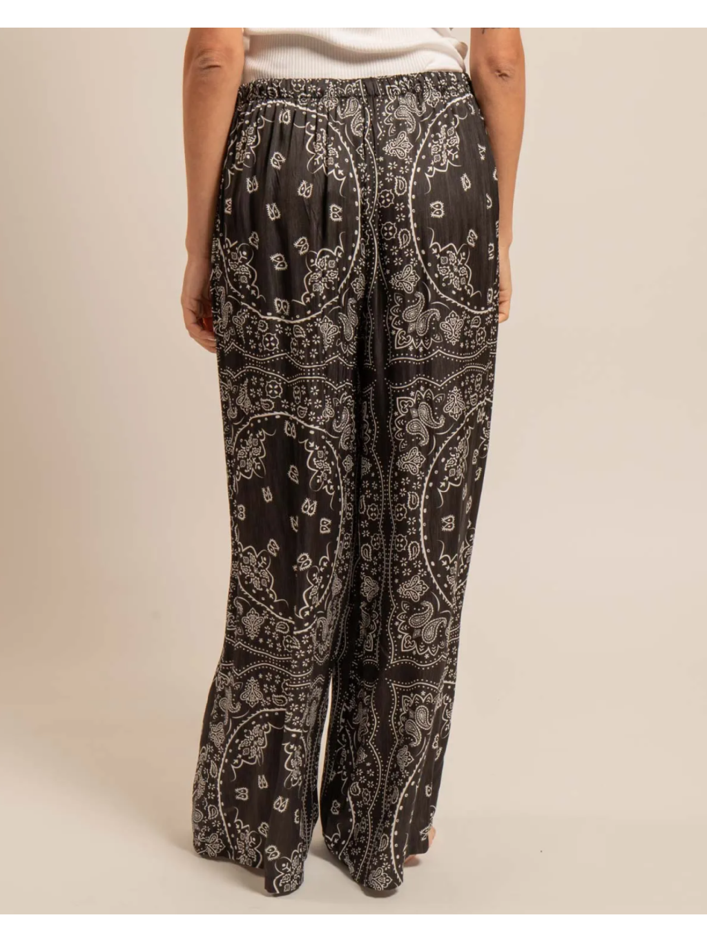 Bandana vzor v odstínu navy dodává modelu výraz, ale zároveň zůstává klidný a snadno kombinovatelný. Elastický pas se šňůrkou se přizpůsobí podle potřeby – pohodlí bez kompromisu.