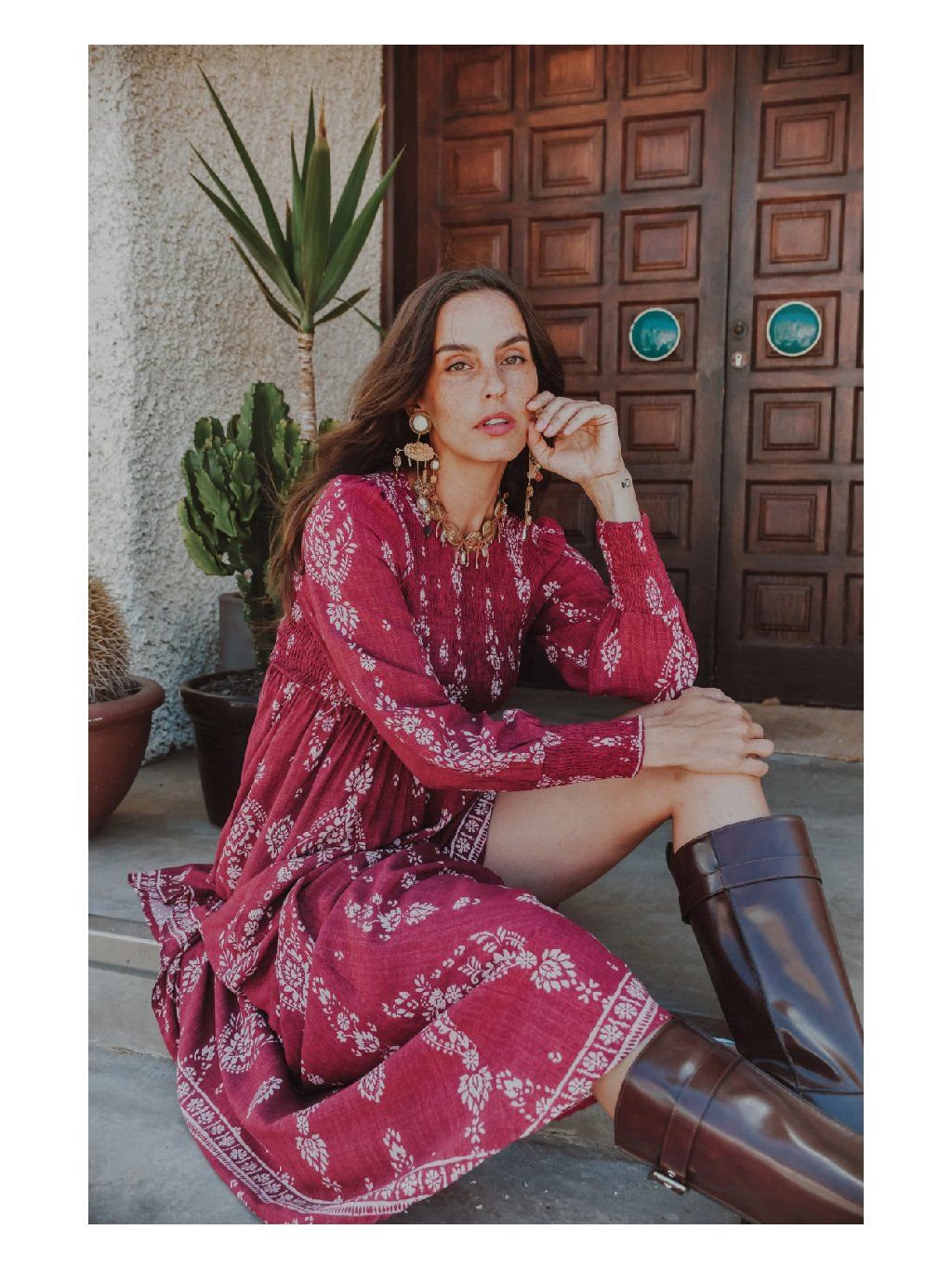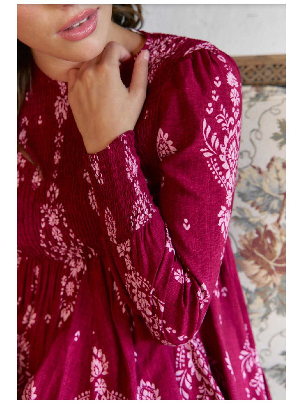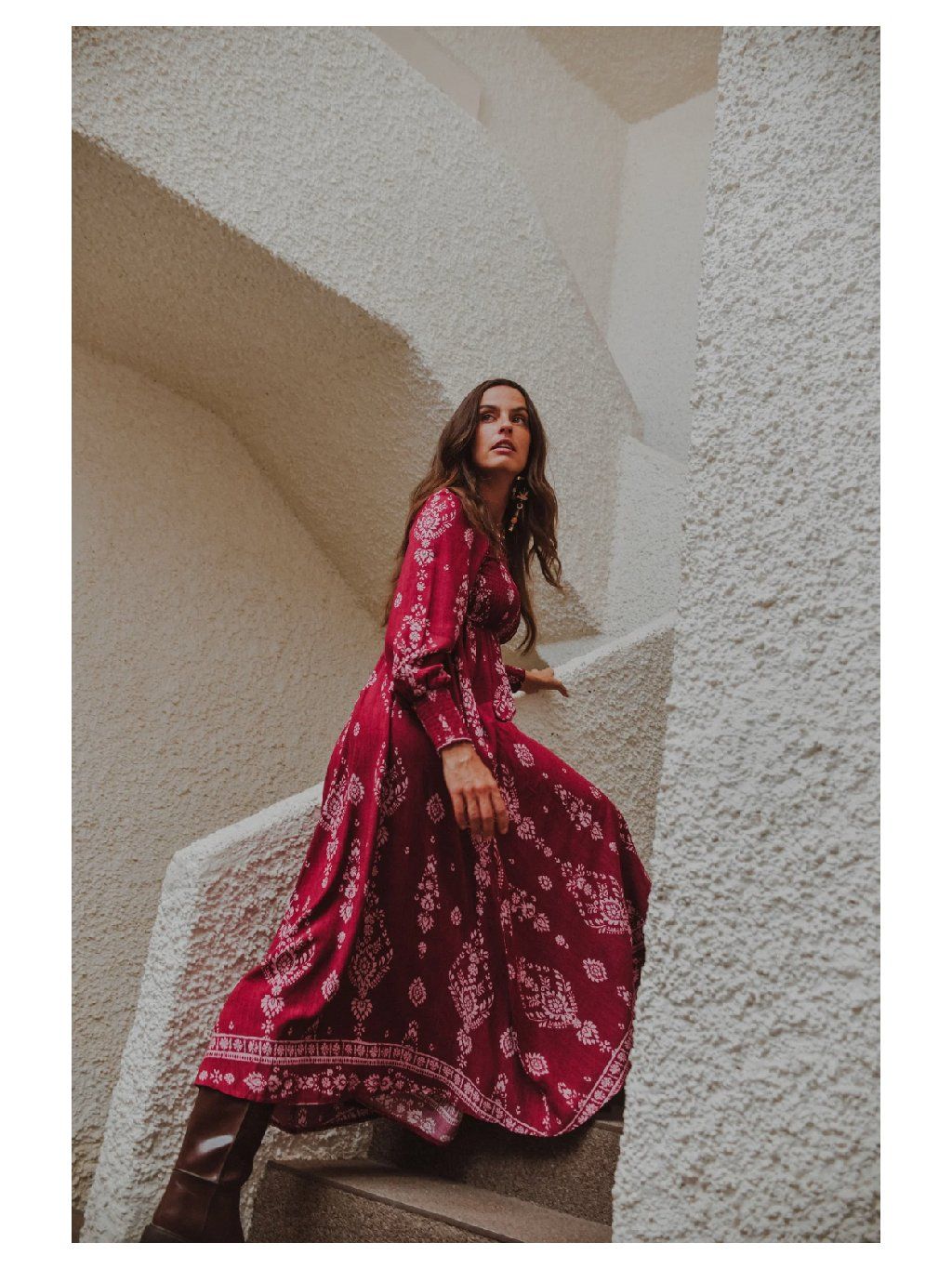 Nadčasové boho šaty v nádherném odstínu hluboké červené s jemným orientálním vzorem.