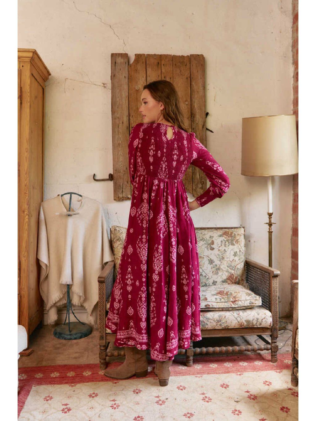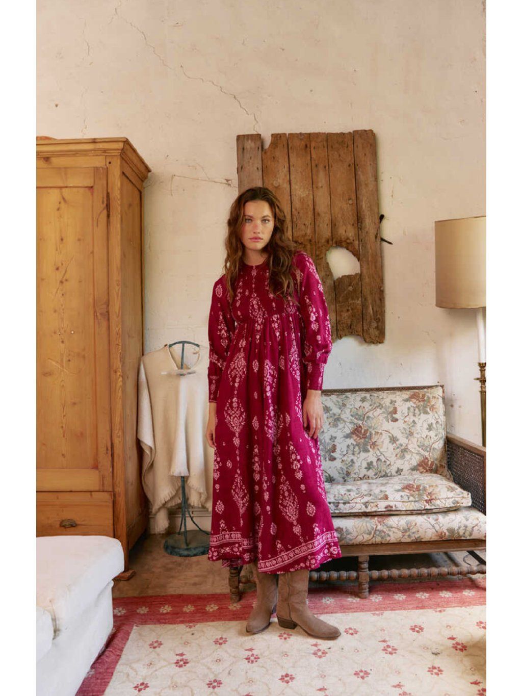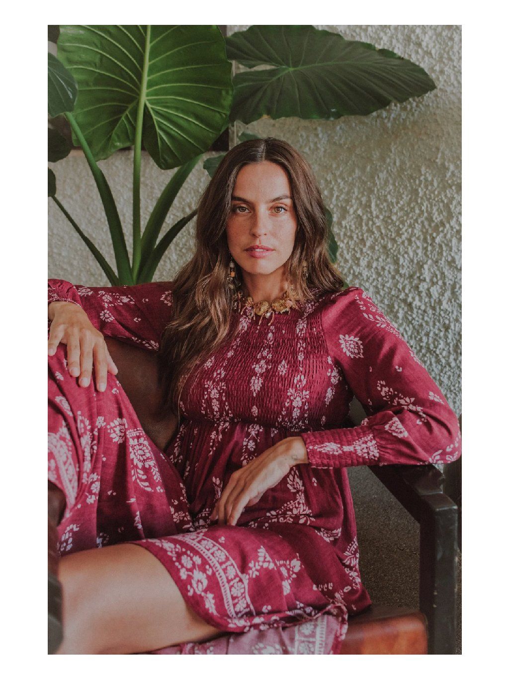 Nadčasové boho šaty v nádherném odstínu hluboké červené s jemným orientálním vzorem.