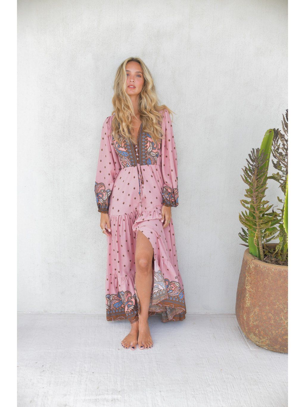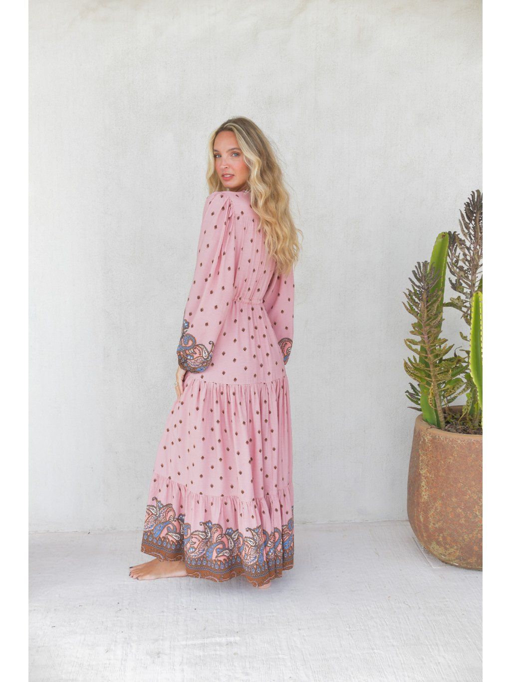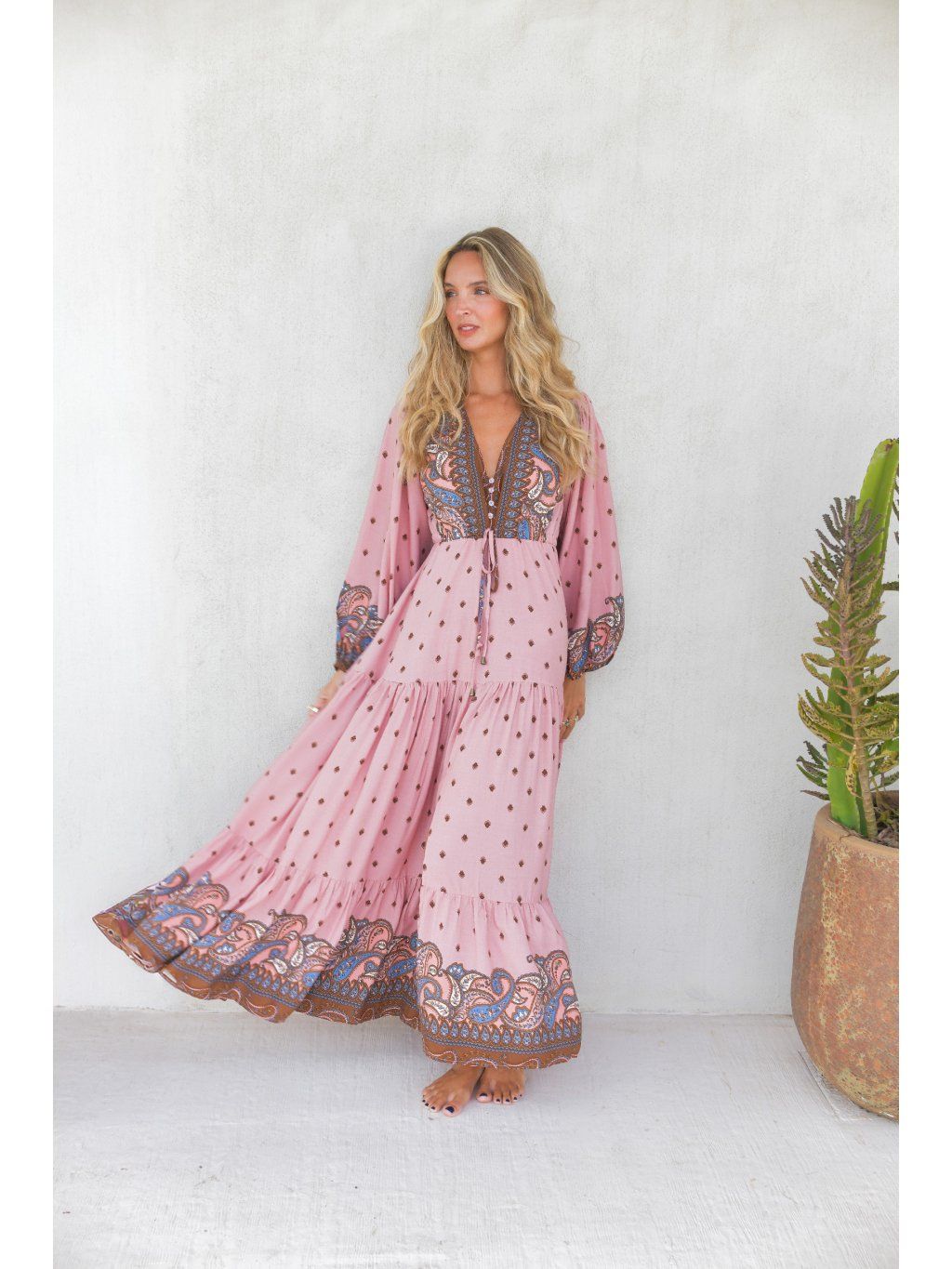 Romantické boho maxi šaty – pudrová růžová