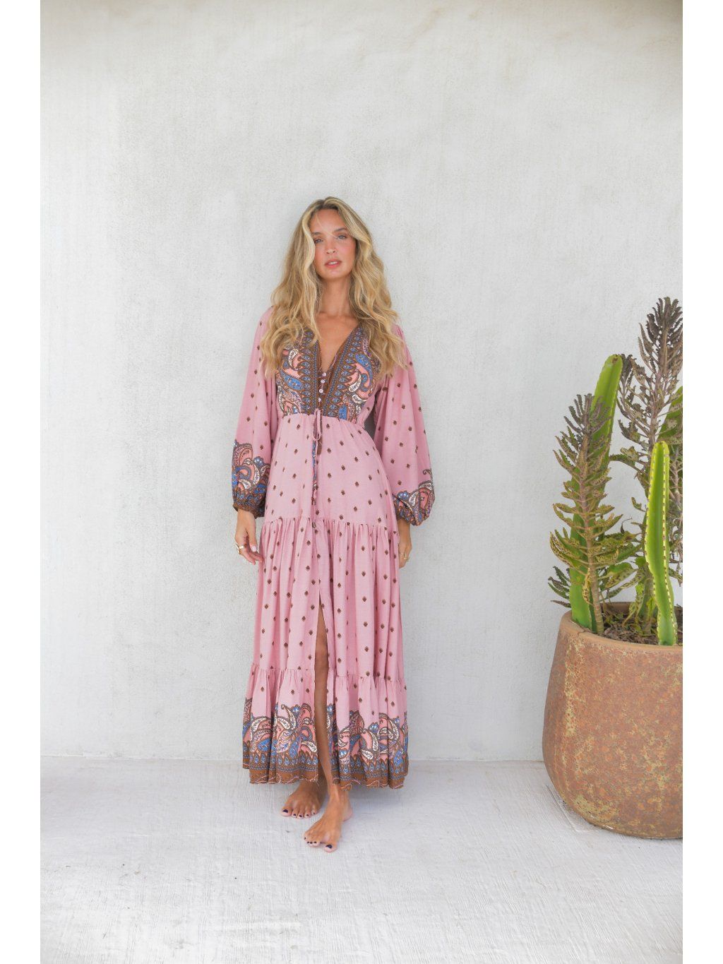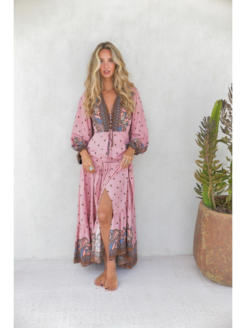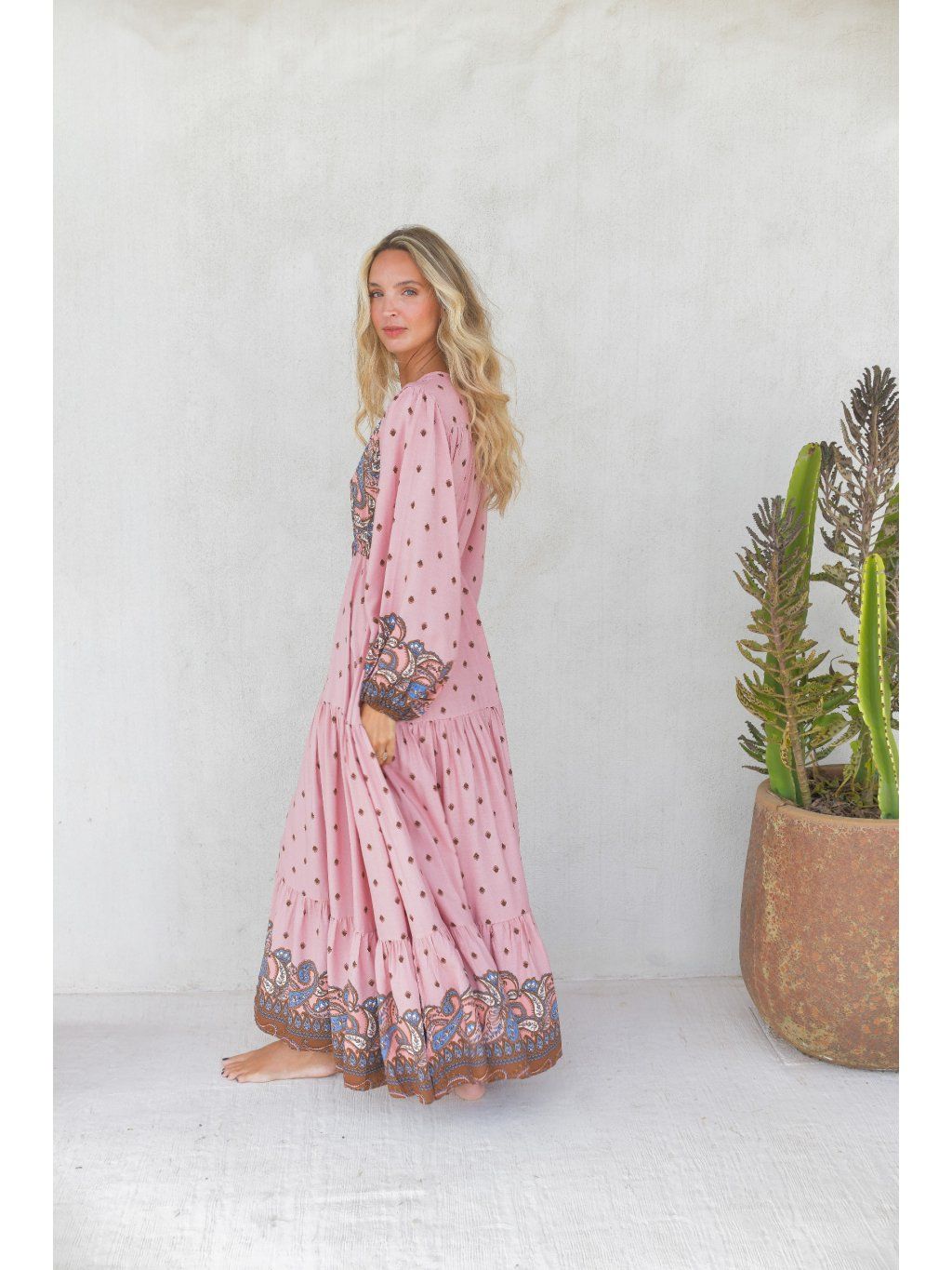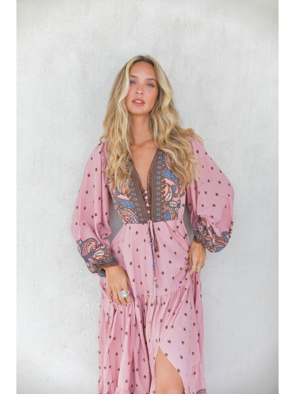 Romantické boho maxi šaty – pudrová růžová