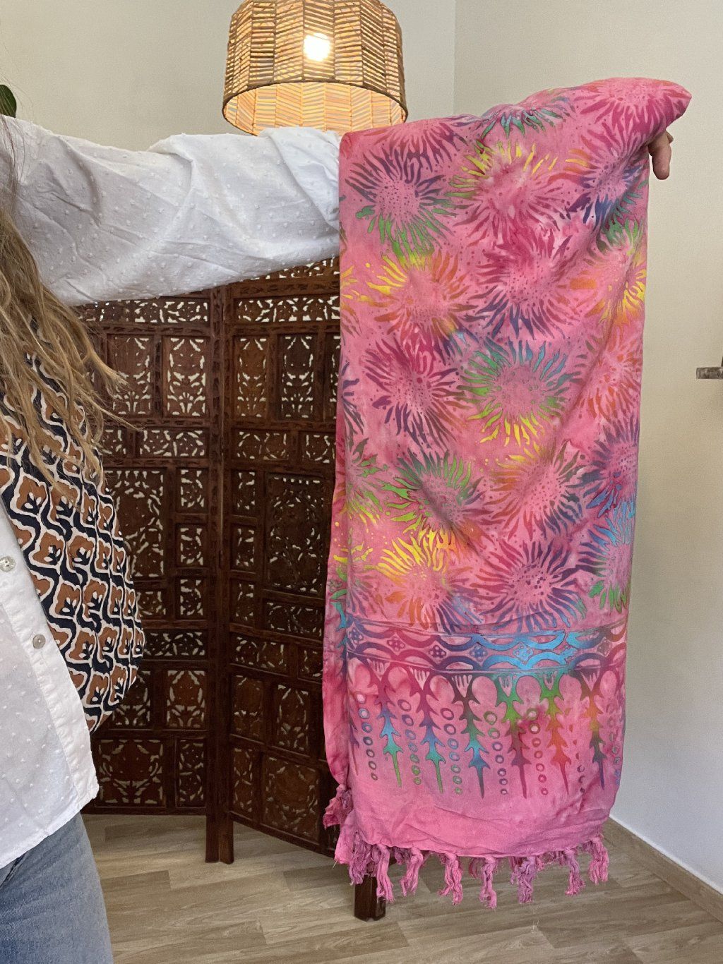 Sarong z Bali je přesně ten typ věci, co hodíš přes plavky, omotáš jako sukni, přehodíš přes ramena nebo uvážeš okolo krku jako šátek.
