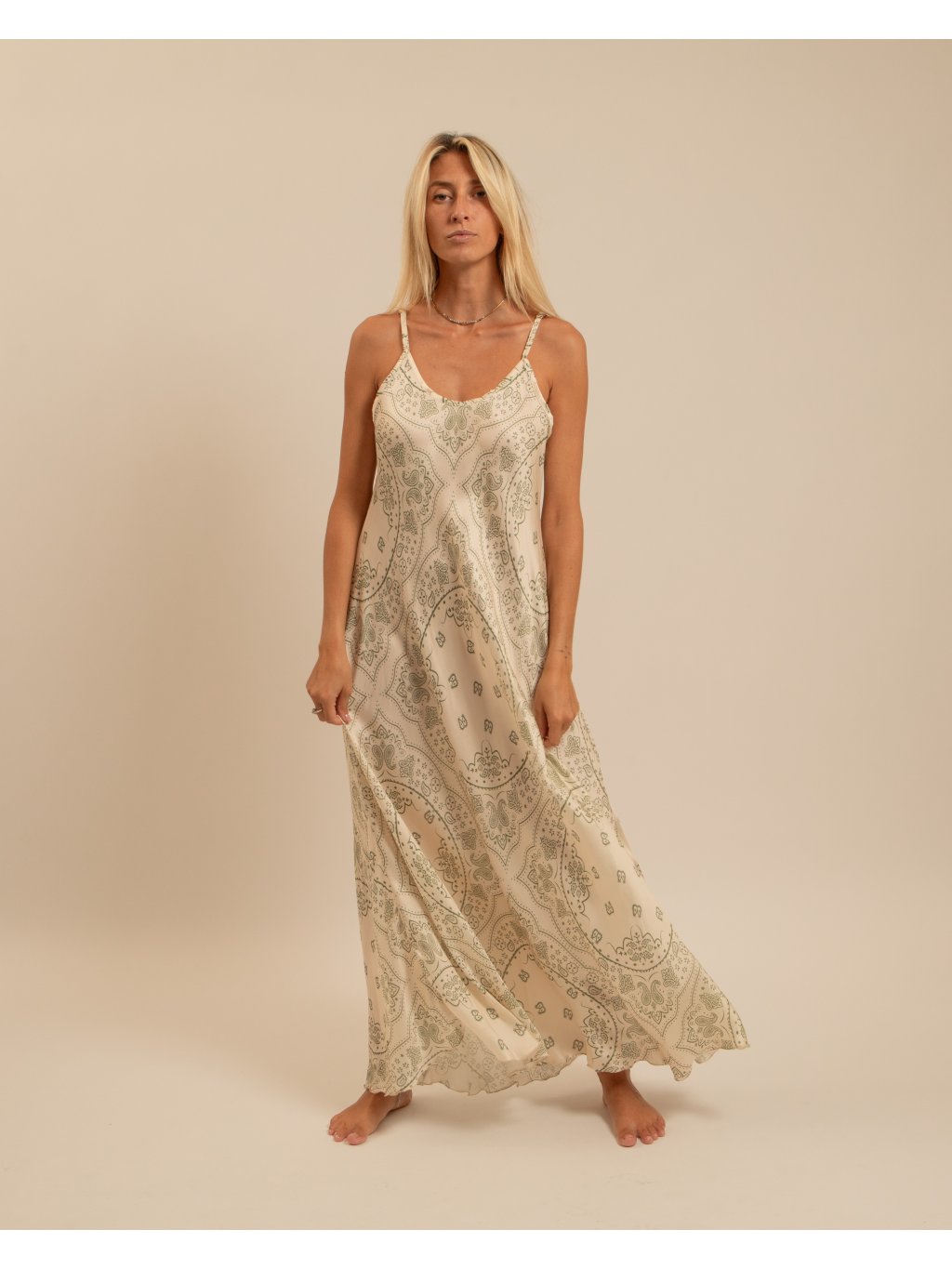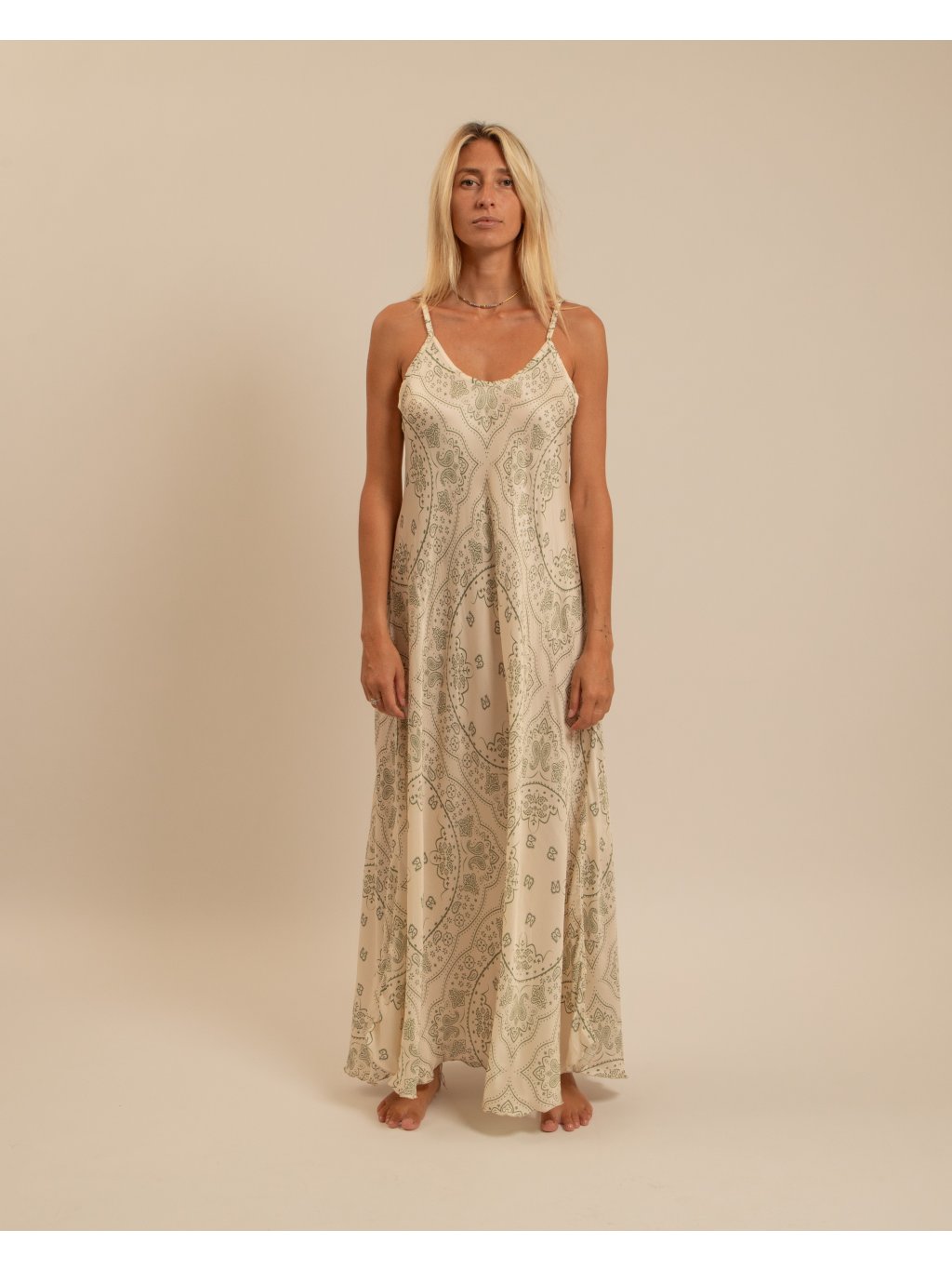 Krémové šaty s bandana vzorem – 100% viskóza | Made in Italy