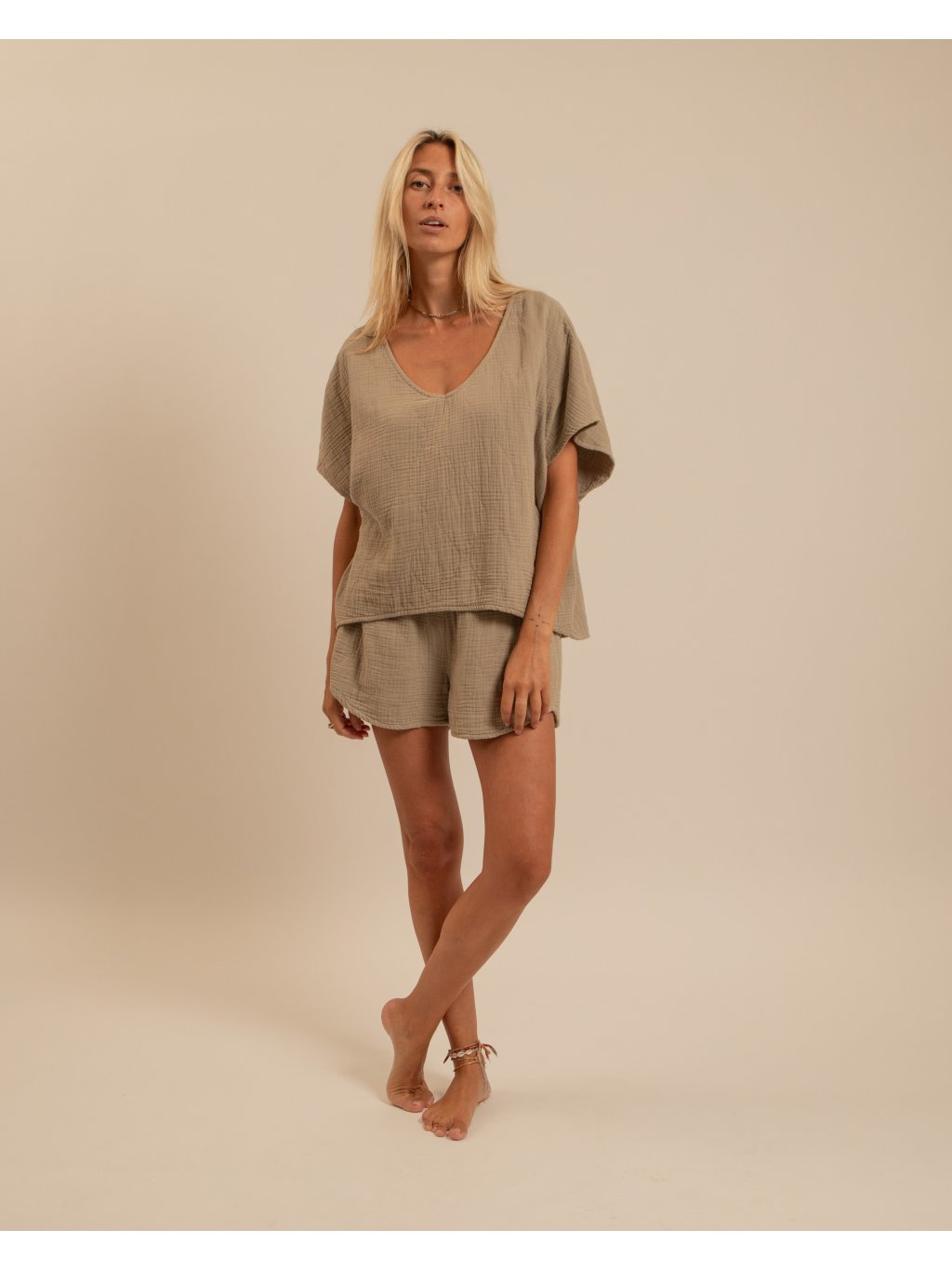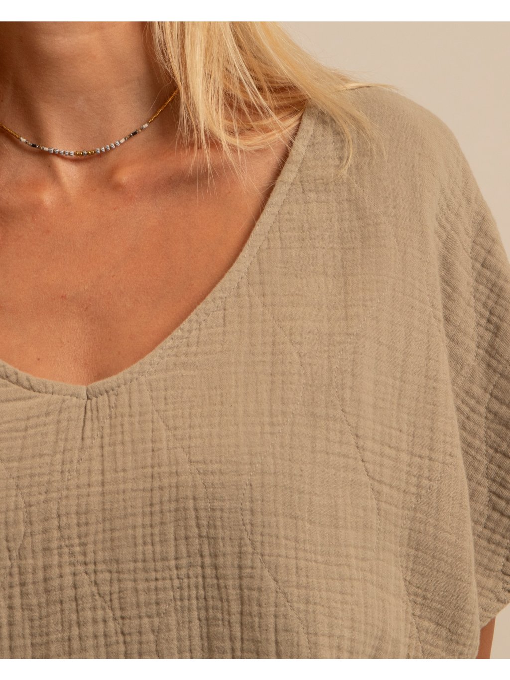 STYLOVE TRIČKO Z DVOJTÉHO MUŠELÍNU - BEIGE